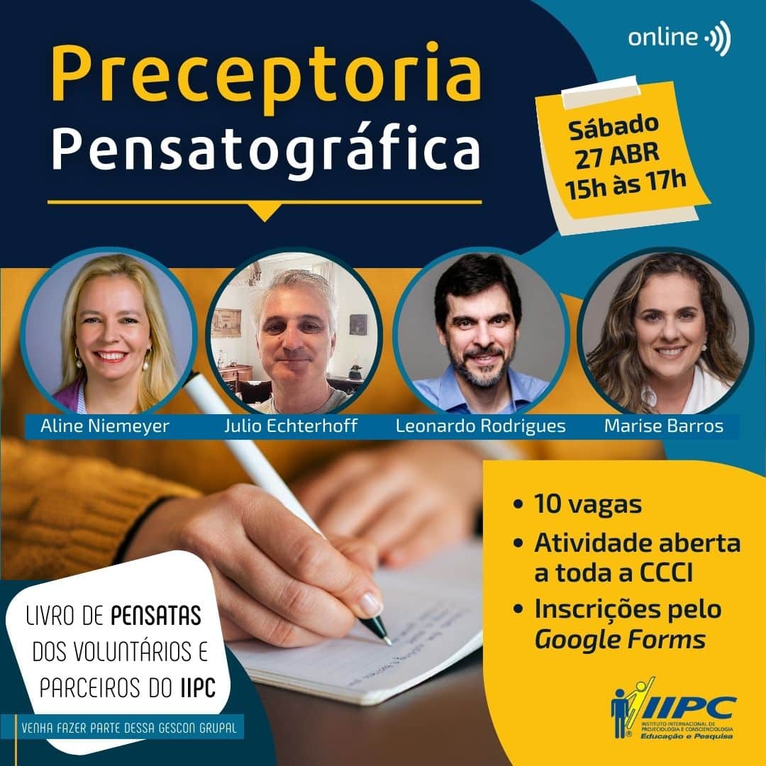 O Livro de Pensatas dos Voluntários e Parceiros do IIPC é um projeto integrativo para toda a CCCI, cujo anfitrião é o Instituto Internacional de Projeciologia e Conscienciologia – IIPC.